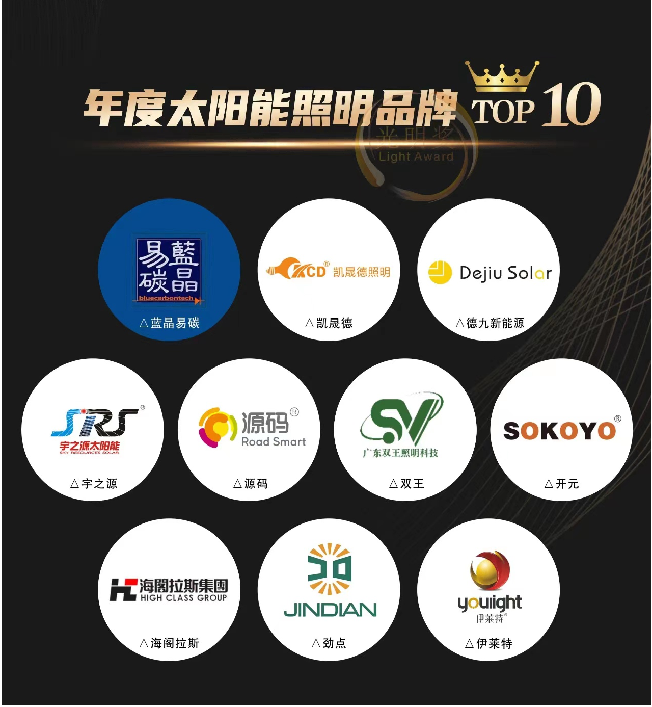 江蘇開元照明集團,以高人氣高口碑光榮登榜,獲得“太陽能照明品牌TOP10”。